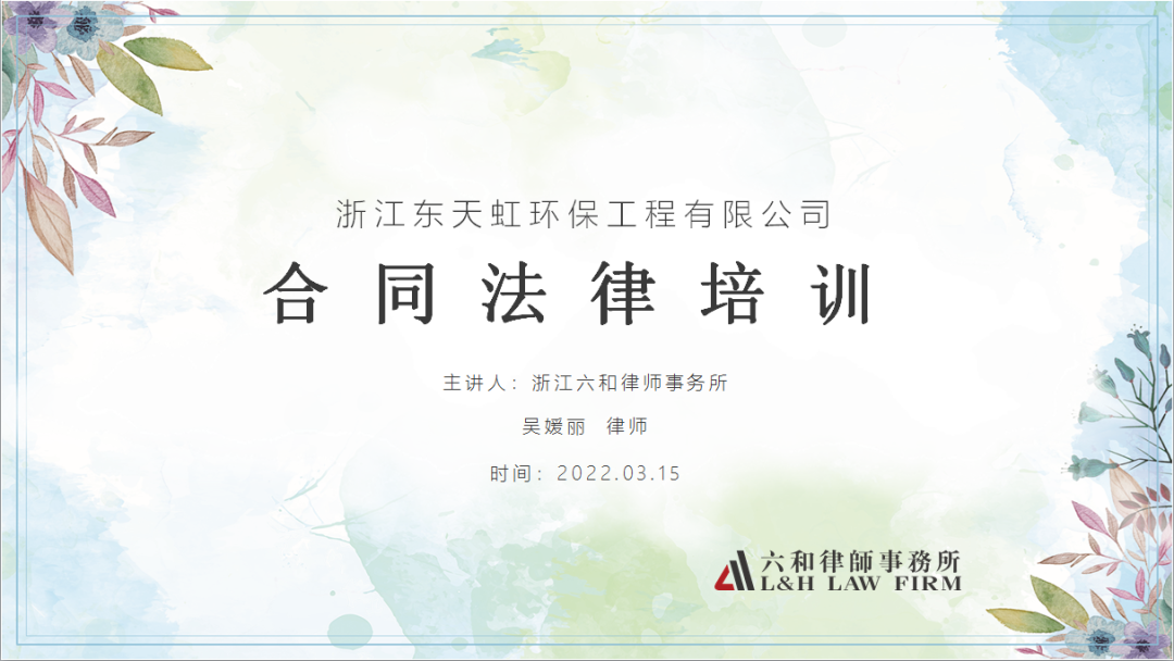 為進一步提升公司管理人員法律風險意識,防范企業法律風險,切實提高實操處置能力,公司于近日組織開展法務知識培訓,特邀請浙江六合律師事務所資深律師對公司運營過程中遇到的合同問題,對部分管理層及相關業務人員進行了培訓。